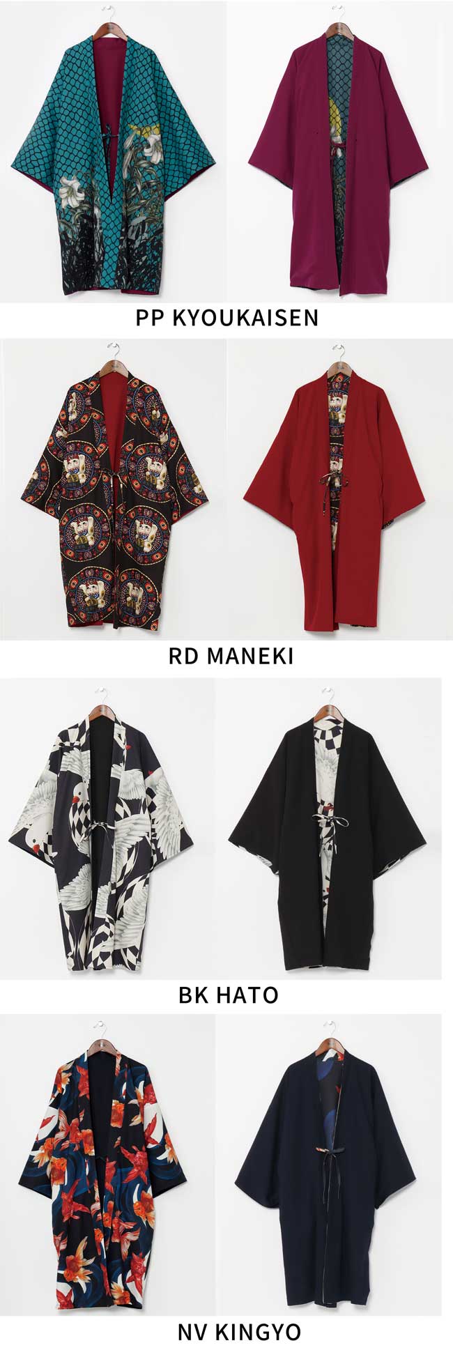 【倭物やカヤ×重宗玉緒】まるで着物のようなシルエットのリバーシブル羽織。新柄に「境界線」が登場しました。●着物・オブジェ作家「重宗玉緒」メインテーマ「メメントモリ(死を想え)」に沿った、絵画のような着物や帯・オブジェを制作する他、作家自身が欲しいと思うファッションとして先鋭的なアイテムを、完全オリジナル、他にはない物作りにこだわって制作。英国立博物館に作品が永年収蔵され、海外でも展示会やビジュアル撮影を行うなど幅広く活動している。