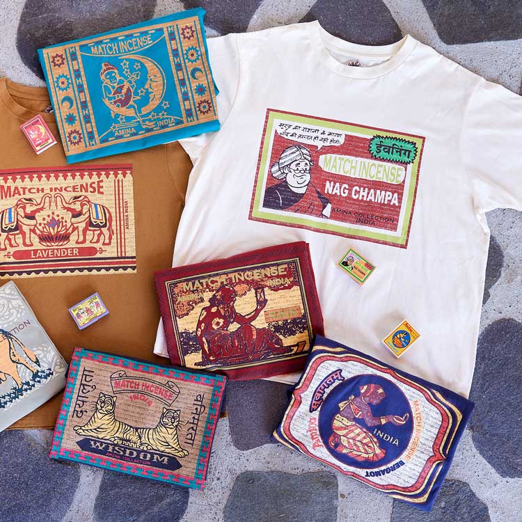 大人気のマッチ香シリーズに新たに登場したXLサイズのメンズTシャツ。個性的な柄のマッチ香プリントと、背中のワンポイント刺繍がポイントのヴィンテージ感溢れるTシャツ。ユニセックスで着用可。さらっと肌触りのいい着心地。シャツとの重ね着に大活躍間違いなし。
