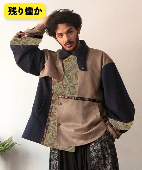 【一点物】ビカンメンズノーカラージャケット《リバーシブル》