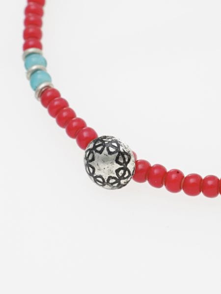 ネイティブアメリカン調なホワイトハーツ風ビーズにメタルコンチョがついたシンプルなアンクレット。細身で色鮮やかなデザインはデイリーで使いやすい仕上がりです。足元に何かアクセントがほしい方や重ねつけで楽しみたい方にもおすすめ。