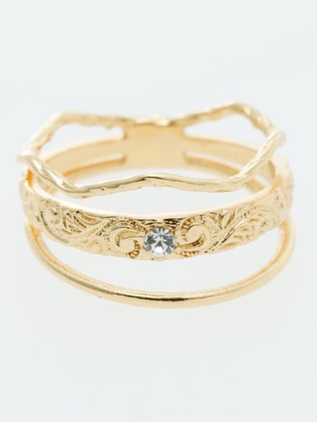 ハワイアンジュエリー調の柄が刻印されたリング。3連にみえるデザインでひとつ着けるだけで指先がゴージャスに。