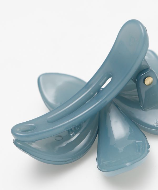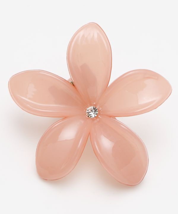 プルメリアのようなモチーフのヘアクリップ。簡単に着脱できて、可愛らしいデザインが小さい子供から大人まで使えるアイテムです。