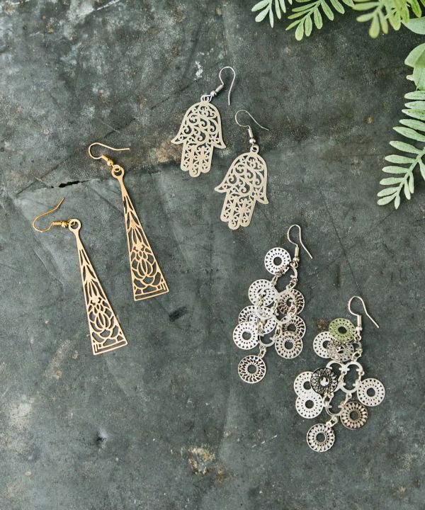 透かし模様が魅力的なピアス。オリエンタルなモチーフで、複数欲しくなる。存在感はあるが、シックな色合いなのでコーディネートの邪魔になりません。軽くて付けやすいです。
