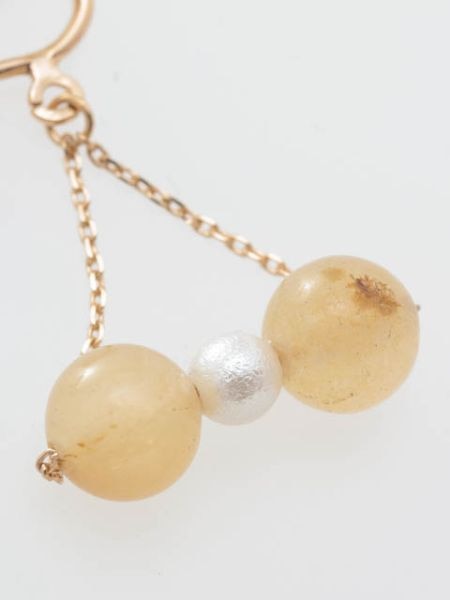 天然石でコットンパールをはさんだ、りぼんを結んだ形のような可愛らしいイヤリングです。誕生石で選んでも、色で選んでも、石の持つ力で選んでも楽しいアイテムです。