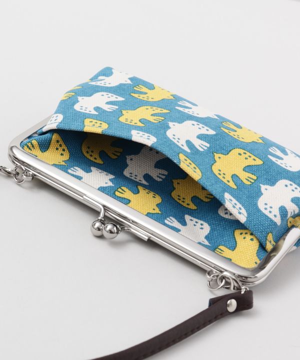 レトロでどこか懐かしい東欧モチーフをイメージした帆布のがま口です。取っ手部分は取り外し可能になっています。ちょこんと手に持って浴衣合わせにもおすすめです。