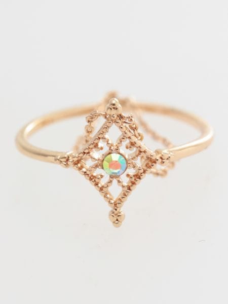 小ぶりの誕生石カラーをモチーフにあしらったメタルリング。細めのチェーンを使用することにより、女性らしく繊細な表情に。台紙付きでギフトにもおすすめです。
