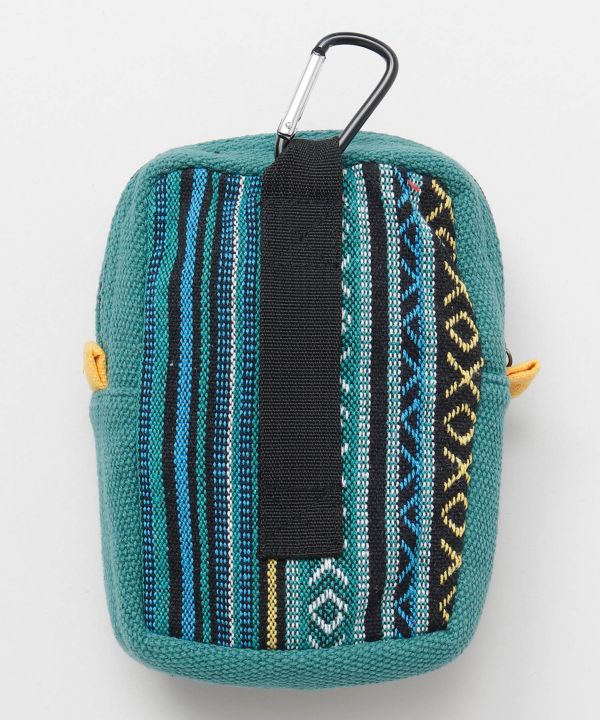 ネパール手織り生地とキャンパス地のコンビネーションが目を惹くポーチ。カラビナやベルトループが付属しており、腰から提げてアクティブシーンも思い切り楽しめる。バッグにつけても。広く開く開口部と外側に付いたファスナー付きポケットが機能性を演出。カラフルなネパールの生地感をお楽しみください。