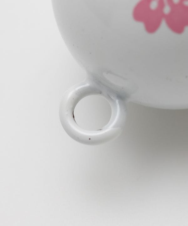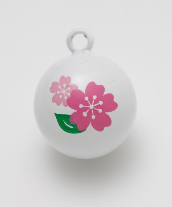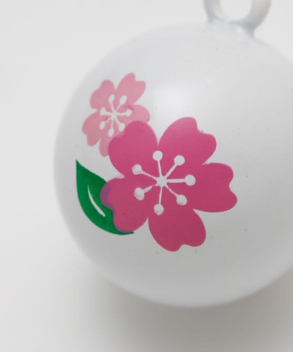 水琴鈴は水琴窟(水滴の反響音を楽しむ日本庭園の装飾)の音を表現した鈴です。穴が開いていないため中で反響し、高く澄んだ趣のある音が特徴。日本を代表する花である桜柄。花言葉は「精神の美」。