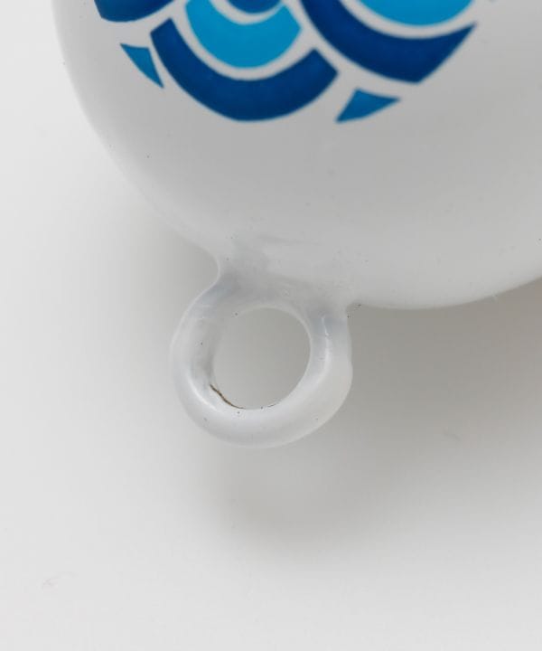水琴鈴は水琴窟(水滴の反響音を楽しむ日本庭園の装飾)の音を表現した鈴です。穴が開いていないため中で反響し、高く澄んだ趣のある音が特徴。無限に広がる波の文様に未来永劫の幸せを願う青海波の柄。