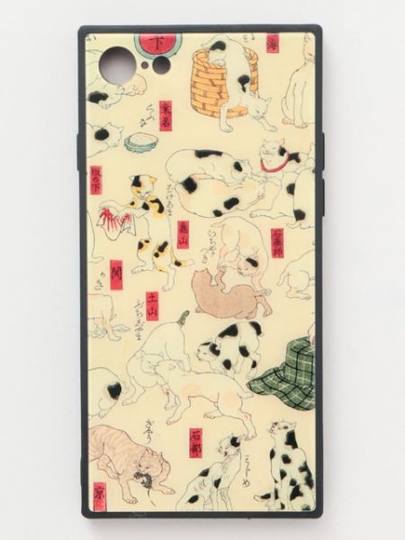 【対応機種:iPhone/7/8/SE(第2,第3世代)】光沢のある強化ガラスを使用した、日本の伝統的な文様を描いたオリジナルスマホケース。※ケースの裏側には、神社で祈祷して頂いたお守りシールをつけています。【三つ巴】渦巻く水を現す、火災除。【其まま地口 猫飼好五十三疋(みゃうかいこうごじゅうさんびき)】浮世絵界きっての愛猫家、絵師・歌川国芳の作。日本橋から京都まで、東海道の宿駅の名前が猫とダジャレで描かれています。【螺鈿 桜】螺鈿(らでん)とは夜光貝などの貝類を彫刻し、漆地や木地などにはめ込み表す煌びやかな技法。【梅結び繋ぎ】「固く結ばれた絆」という意味の他に魔除けの力があるとされる梅結び。贈り物にもおすすめの柄です。
