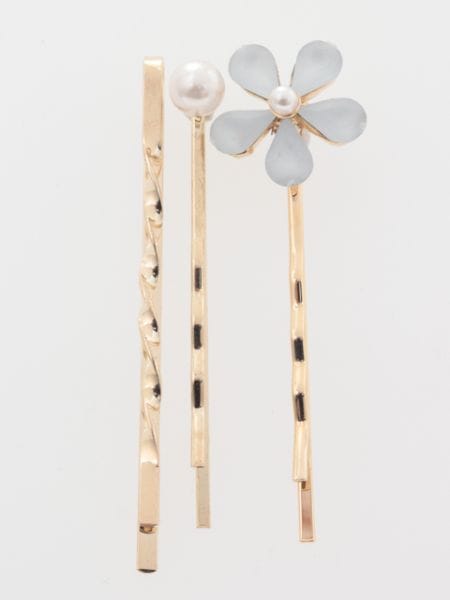 3本がセットになった、ヘアピンです。シンプルはヘアピンから、しっかりとしたモチーフが付いているものまでがセットになっているので、使いやすく便利な商品です。