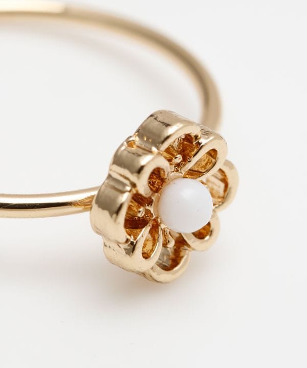小さなお花がモチーフになっているリング。はっきりとした色の付いたビーズがさりげないアクセントになります。日常使いにもおすすめです。