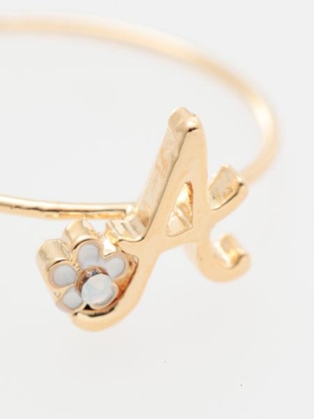 英字(アルファベット)をモチーフにお花とあわせたリング。シンプルで華奢なかわいいデザイン。6つのアルファベットの中から選べます。