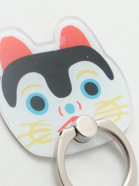 スマホに付けて使えるスマホ用リング。招き猫、犬張子、こけし、だるまと可愛い民芸たちがプリントされた見て楽しい、使って便利なアイテムです。贈り物にも。