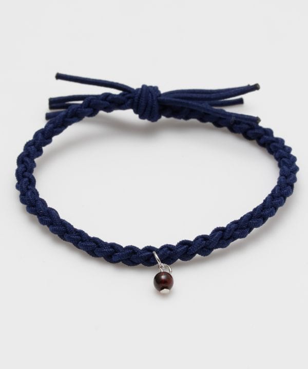 厄災祓いの茅の輪をイメージして編み込んだ紐に、天然石をあしらいました。男女問わずお召しになれるデザインで、気軽に身に付けられるゴムタイプです。ヘアゴムとしてもお使いいただけます。