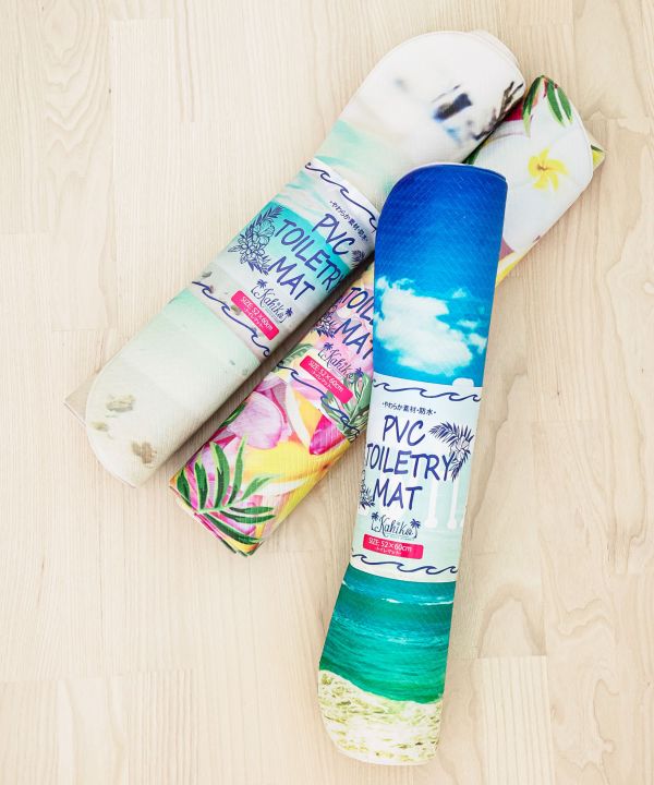 ハワイの自然を思わせるモチーフをあしらったトイレマット。やわらかなカラーリングが空間に穏やかな南国ムードを広げます。防水仕様で汚れてもさっと拭き取れるため、お手入れも簡単。毎日使う場所を心地よいハワイの癒し空間へと導いてくれる実用性とデザイン性を兼ね備えた一枚です。