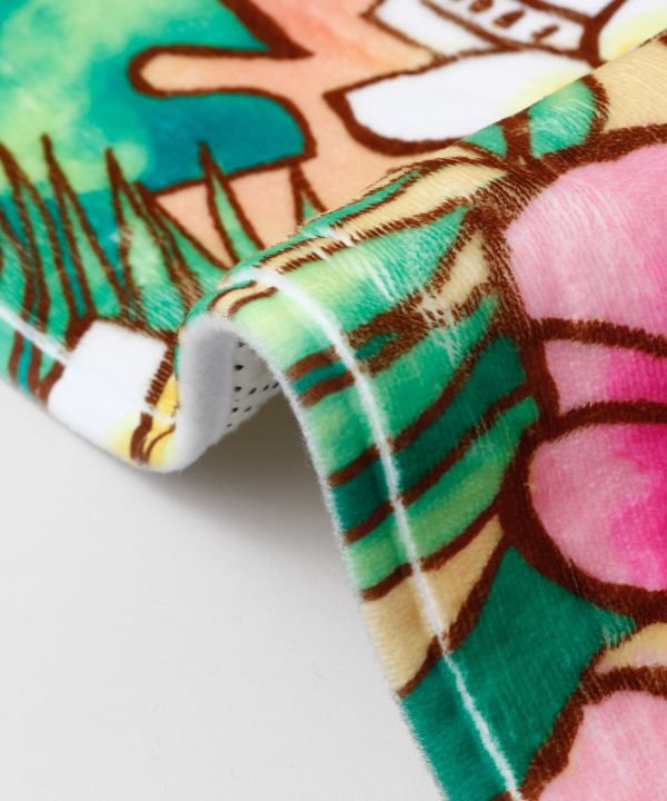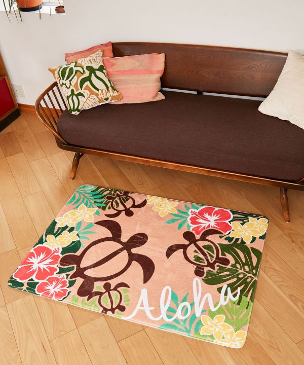 HAWAIIの町並みや、お花が散りばめられた肌触りのいいマット。カラフルな色合いがおうち時間をわくわくさせてくれます。ウクレレを弾きながらリラックスタイムを楽しんでみては。