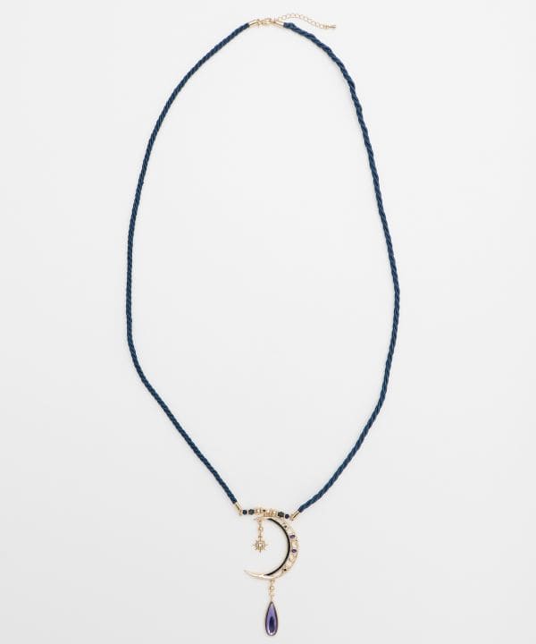 月モチーフと太陽を組み合わせた女性らしいネックレス。光に当たると色が鮮やかに透けて見えるのが幻想的です。大ぶりのモチーフネックレスはコーデのアクセントに。