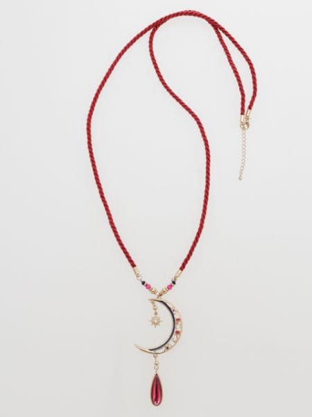 月モチーフと太陽を組み合わせた女性らしいネックレス。光に当たると色が鮮やかに透けて見えるのが幻想的です。大ぶりのモチーフネックレスはコーデのアクセントに。