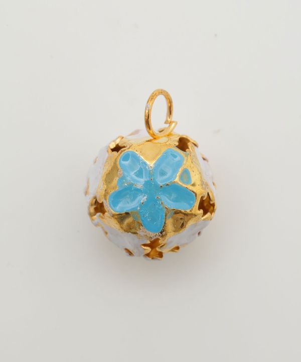 お花の模様を施した鈴のメタルチャーム。お好きなチェーンや紐、パーツと組み合わせてご使用出来ます。