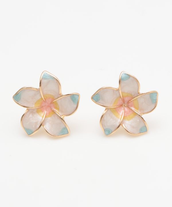プルメリアはハワイでPuameliaと言いとても身近な花で、甘く優しい香りの花です。気品、情熱などの意味があり、身につける人の魅力を引き出すと言われています。そんなプルメリアを香りがしてきそうな美しいピアスにお作りしました。ハワイの優しい風を感じてみてはいかがですか。