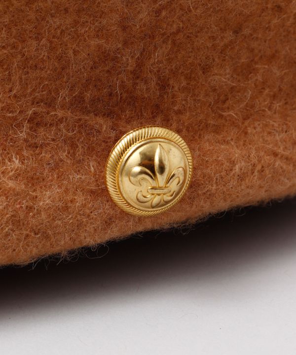 ふわりとしたシルエットが可愛らしいキャスケット。フランスのユリの紋章「フルール・ド・リス」がワンポイントで輝きます。優しくて暖かな印象のカラーリングがコーディネートをより一層引き立てます。サイズ調節のできる紐が付いています。