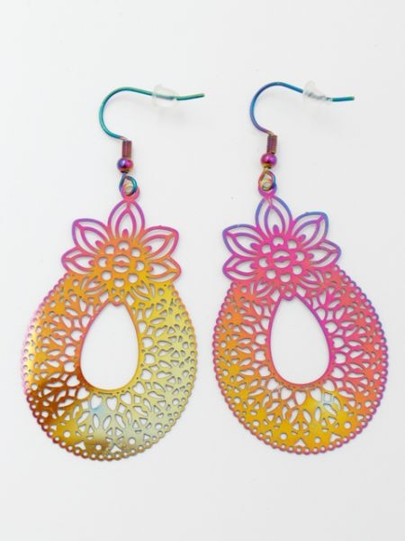 モチーフによって雰囲気が異なるオリエンタル調ピアス。角度によって色が変化する。大ぶりで存在感バツグン。コーデに合わせやすくデイリーに使えます。