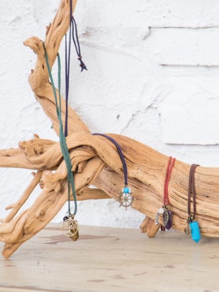 あなたに寄り添う旅のお守りに。天然石のヘッドとビーズ、お守りの意味を持つモチーフの組み合わせのネックレス。意味で選ぶも良し、第一印象で選ぶも良し。「いかり・ターコイズ×ソーダライト=目標達成」「舵・クリスタル×ターコイズ=安全祈願」「魚・ラピスラズリ×オニキス=仕事運」「馬蹄・アメジスト×ローズクオーツ=恋愛運」「木・タイガーアイ×オニキス=金運」