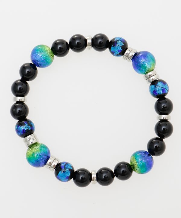 海面から光が差し込む神秘的な海の色をイメージした蓄光ホタル玉の数珠ブレスレット。光に当てるときらりと輝くホタル玉と天然石が手首を美しく魅せてくれます。女性の手首にぴったりフィットするサイズ感です。