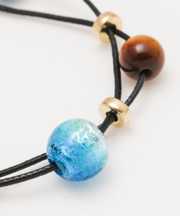 海面から光が差し込む神秘的な海の色をイメージした蓄光ホタル玉のブレスレット。光に当てるとキラキラと輝くホタル玉と天然石が手首にキラリと輝きを与えてくれます。派手すぎないので他のブレスレットと重ねづけも楽しめます。