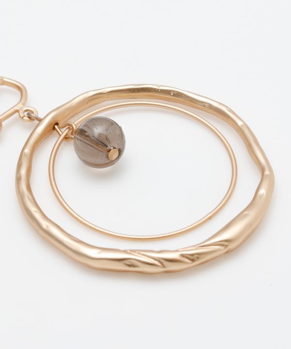 クルクル回る太陽と月。宇宙をイメージしたモチーフに、エキゾチックな天然石を組み合わせたアシンメトリーイヤリング。動きのあるモチーフは見る角度によって違った雰囲気を見せてくれます。周りの目線を釘付けにさせること間違いなし。