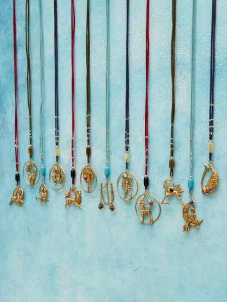 12星座をイメージしたネックレス。ネックレスの色は星座の火、水、風、地の4つのグループの色をイメージしています。ご自身の星座で選ぶのももちろんですが、お気に入りのデザインを探すのも◎モチーフ部分はアンティーク調なゴールドなので上品な雰囲気です。