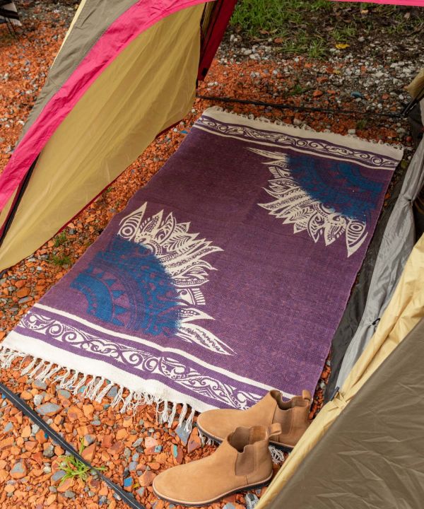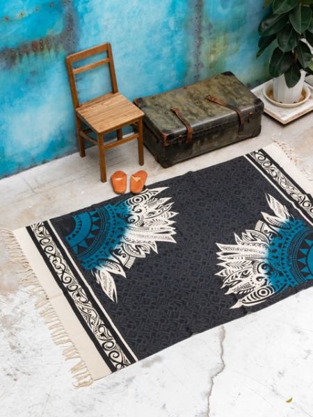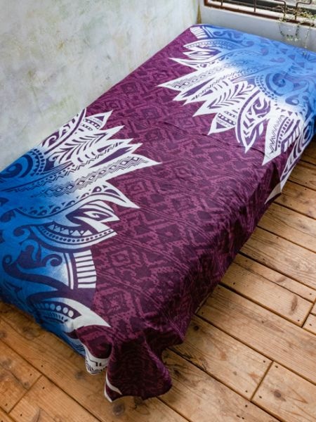 ネイティブインディアンの羽をトライバル調に表現したデザイン。ベッドやソファーに掛けたり、フックをつけてカーテンなどにしても。アレンジ次第で使い方の広がるマルチファブリック。渋めのカラーリングでお部屋をクールな印象に。