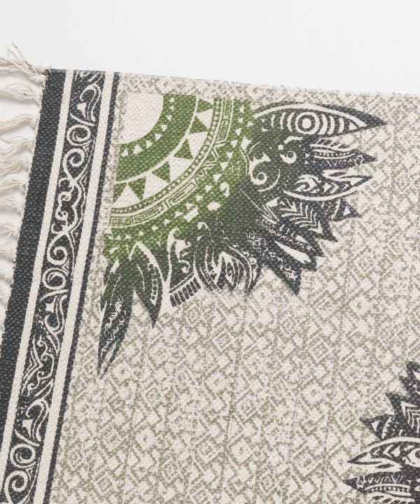 力強いポリネシアントライバル柄が空間の中で冴える。同じ空間にいるだけでエネルギーが満ちてくるような心躍るデザインを日々の生活の中に取り入れてみよう。手軽に使いやすいサイズ感で玄関やキッチンなどに。渋めのカラーリングでお部屋をクールな印象に。