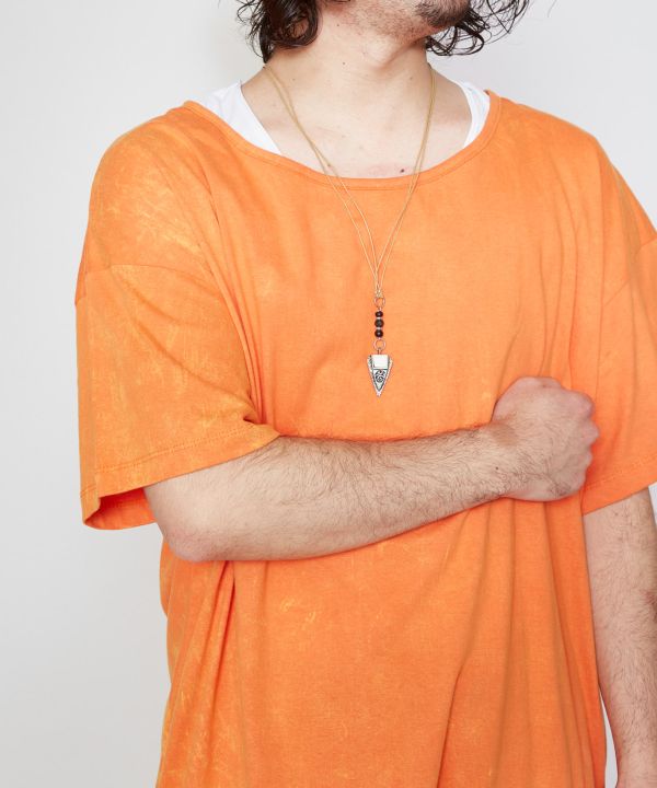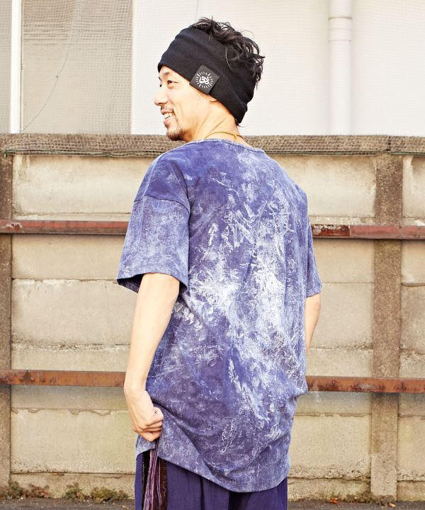太陽を味方に。選べる7色展開。アウトドアやヨガなどシーンを選ばない、身幅ゆったりの楽ちん万能メンズTシャツ。アシッドウォッシュ加工で表面感もかっこいい。一枚一枚違う色の抜け方がオシャレ心をくすぐります。思い切りアクティブに体動かしたくなる、そんな一枚。