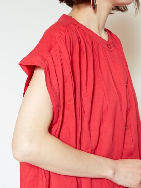 1枚でコーディネートが決まる、コットンボリュームワンピース。肌触りが気持ちいいインド綿素材を使用。前ボタンを開ければ羽織としても着用可能な万能アイテム。裏地付き。
