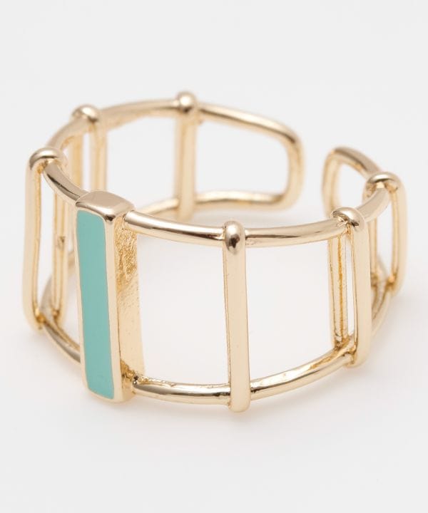 シンプルな網状のメタルリングに、パステルカラーのストーンがさりげないリングです。