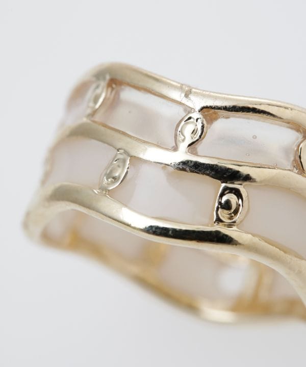 うねりのあるメタルフレームが印象的な、ステンドグラス風リングです。