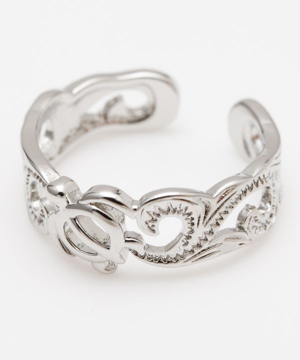 透かしホヌとスクロールを組み合わせたハワイアンジュエリー調の彫りが施された素敵なトゥーリング。ホヌとはハワイ語で海亀のことで、ハワイを含むポリネシアン文化圏では、神聖な生き物、神様の使い、海の守り神として、古から今日まで大切にされています。調整可能なためリングとしてもお使いいただけます。