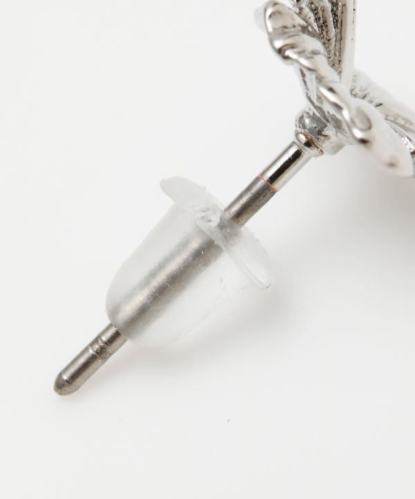 ハイビスカス(アロアロ)とハワイアンジュエリー調フープのセットピアス。立体的なハイビスカスは可憐な印象。ハワイアンジュエリー調の紋様をほどこしたフープピアスはシンプルなのでどんなコーディネートにも合います。
