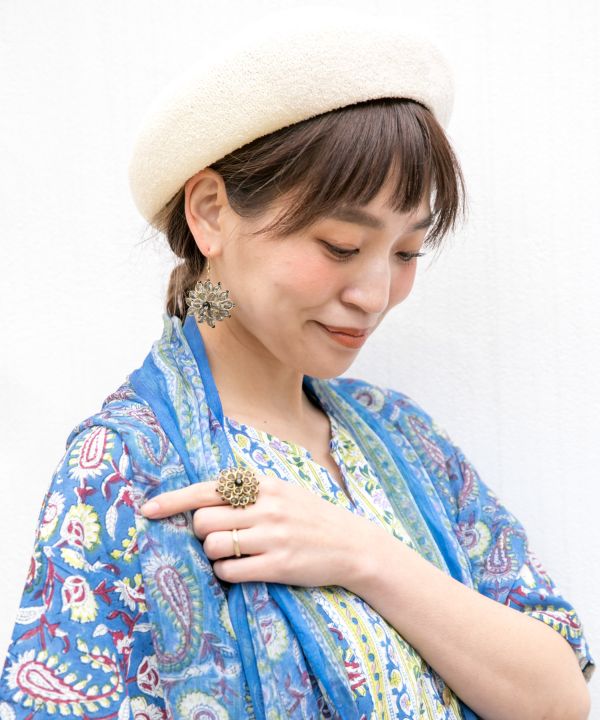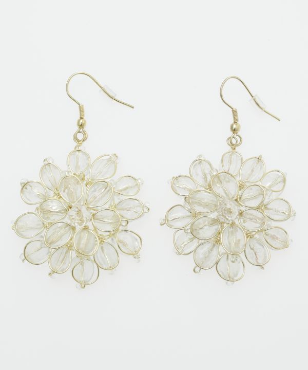 繊細なビーズとワイヤーワークが織り成す光の世界。職人が一つ一つ小さなビーズにワイヤーを通し、丁寧に作られたピアス。気の遠くなるような細かな作業に職人の技が光る。動くたびに揺れるデザインは光輝き、あなたの日常に彩りを与えてくれる。
