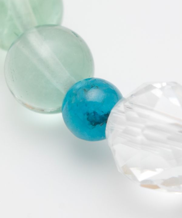 大ぶりの水晶と賑やかな色石の組み合わせが、他にはない存在感を演出します。※こちらの商品は、種類によって着色加工を施した天然石を使用しております。グリーン メノウ/アゲイト(緑瑪瑙)【健康美容】