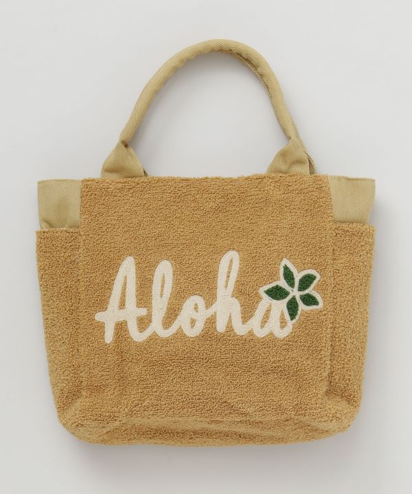 温かみのあるサガラ刺しゅうを施したバッグ。上品なデザインで高見えに。両サイドにはポケット付き。ハワイを代表するモチーフ達が、ハワイを感じさせてくれます。
