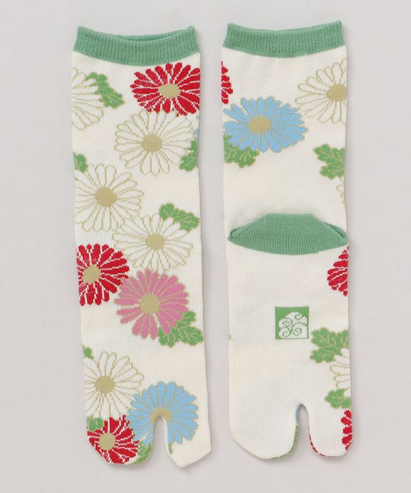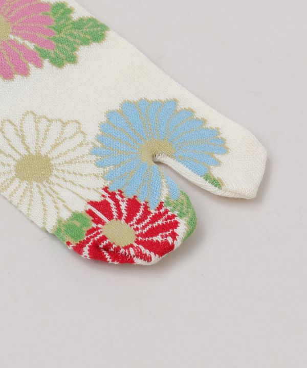 ◆靴下の一大産地 奈良県で作られた足袋型くつ下◆日本人の足にしっかり馴染んで履きやすい。足袋特有の履き心地。古くて新しい奈良の靴下です。可愛らしく咲き誇る小菊柄。