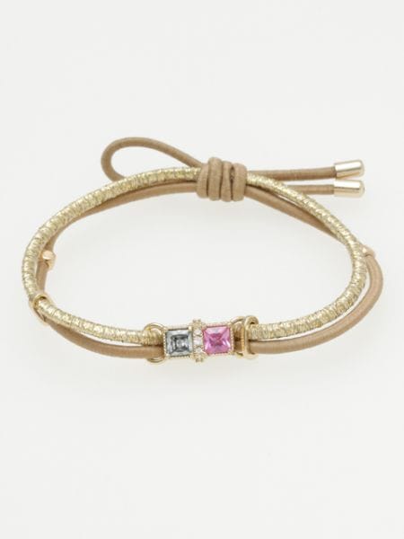 キラキラと輝く香水のビンをイメージしたヘアゴム。華やかなゴールドとの2本使いがポイントです。繊細なワークと透き通るような2色のカラーストーンが上品ながらも華やかに彩り、あなたの魅力を高めてくれます。