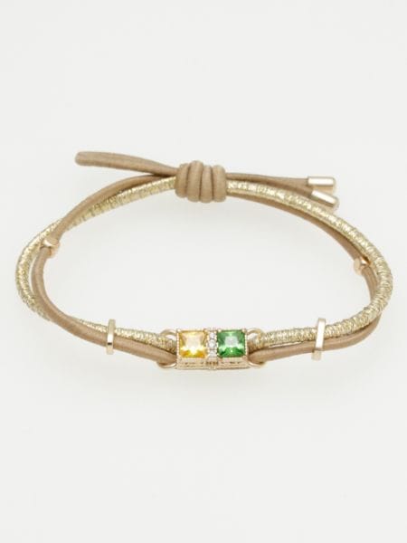 キラキラと輝く香水のビンをイメージしたヘアゴム。華やかなゴールドとの2本使いがポイントです。繊細なワークと透き通るような2色のカラーストーンが上品ながらも華やかに彩り、あなたの魅力を高めてくれます。