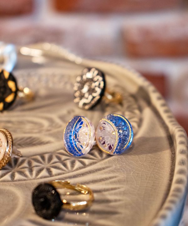 色とりどりの繊細なデザインが愛らしいチェコ・ボヘミア地方のガラスボタン。現地の工房では昔ながらの手作業でひとつひとつ丁寧につくられています。そんな魅力あふれるガラスボタンを現地から直接仕入れ、素敵なピアスに仕立てました。レトロな雰囲気が印象的。ひとつひとつ微妙な違いがあり、手作りならではの味わいをお楽しみいただけます。いつものコーディネートに彩りをプラスしてみてはいかがでしょうか?