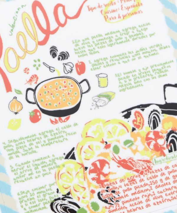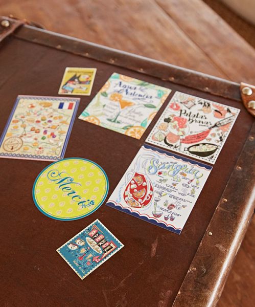 パエリアやサングリアのレシピがポップにカラフルに描かれたスパニッシュレシピモチーフのステッカーです。耐水性があるためキャリーバッグやパソコンなど、様々なものにお使いいただけます。