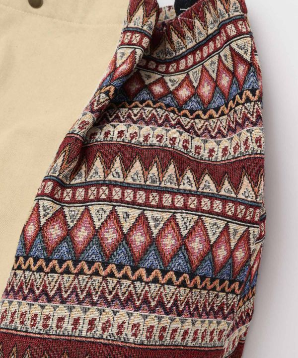 旅する気持ちを日常に。ネイティブアメリカンのモチーフで肩にかけられるビッグサイズのバッグ。仕分けができる内ポケット付き。旅の準備を整え、自分らしく出かけよう。
