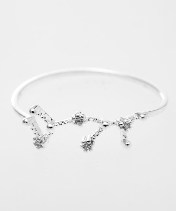 華奢ながらもしっかりと存在感のある星座モチーフリング。神秘的なデザインは見る者を魅了し続けてくれることだろう。